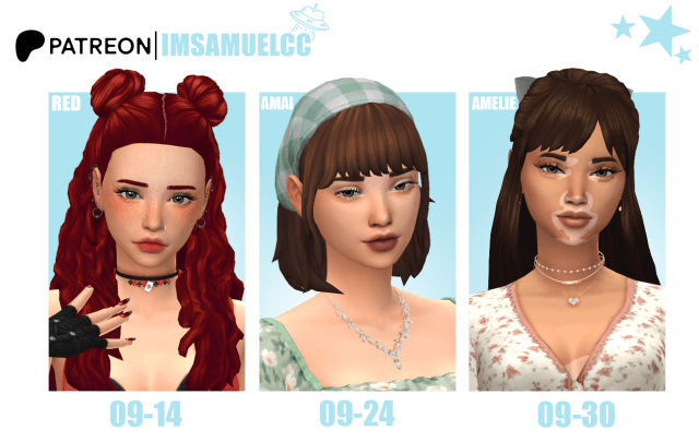 Amai Hairstyle September releases are here! Early access is available on Patreon for all hairstyles! The public release date is below each hairstyle.