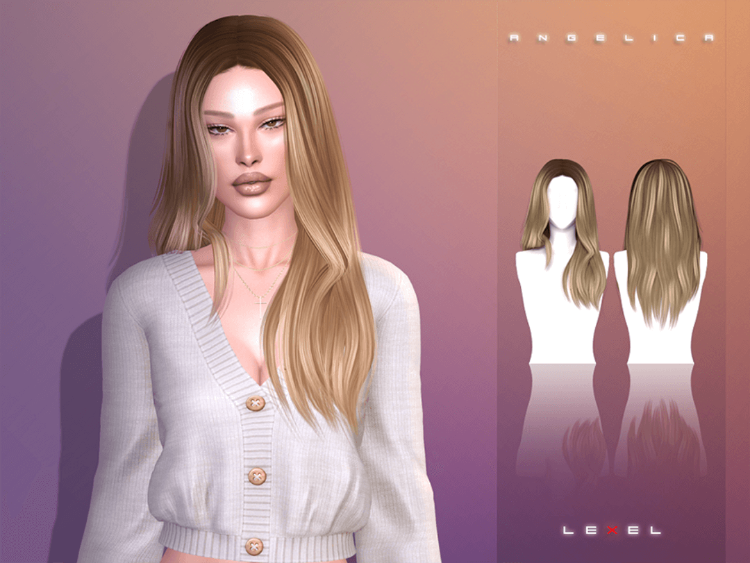 Angelica – adult hairstyle 30 swatches T – E Both frames HQ textures Color slider mod support Hats compatible