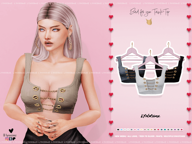 Bad for you Tank Top ~ Supporters / Members ✨ New Mesh All Lod’s Teen to Elder Multiple Swatches Custom Maps/Thumbnail Disabled from random Found in *Tank Tops* HQ compatible Base game compatible