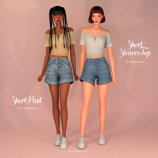 Bloomtide Collection Hi! This is the last outfit from the collection, is HQ compatible and can be found in the Top and Bottom sections of the CAS. Short Sleaves Top – 9 swatches Short Pant – 15 swatches