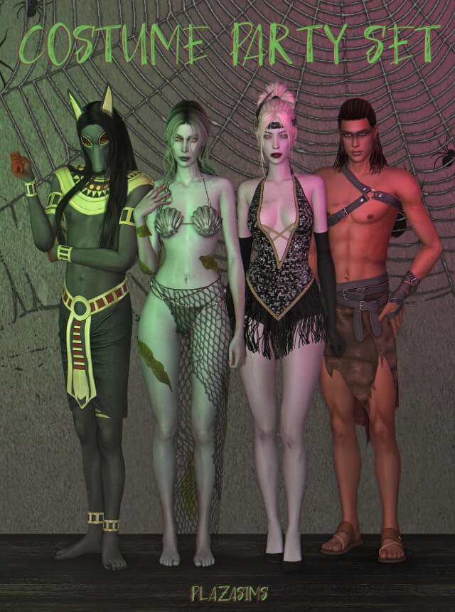 COSTUME PARTY SET Mesh by me Full body For male/female HQ compatible Set contains: Anubis costume and mask Siren costume and algae acc (bracelete category) Flapper costume and headdress Barbarian costume