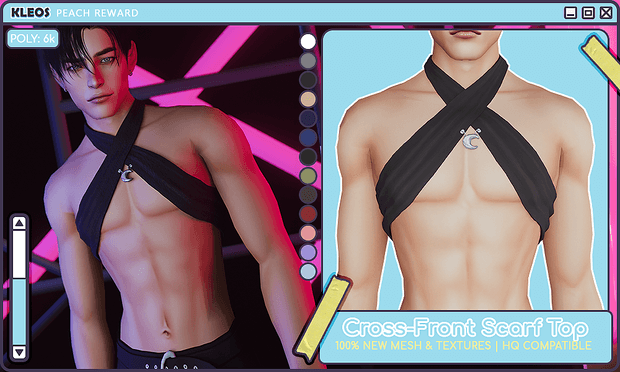 Cross-front Scarf TopCross-front Scarf Top Mesh: all LODs, 100% new, poly 6k Textures: HQ enabled Model Credits: Hair: Moood Skin/Makeup: Obscurus, Northernsiberianwinds