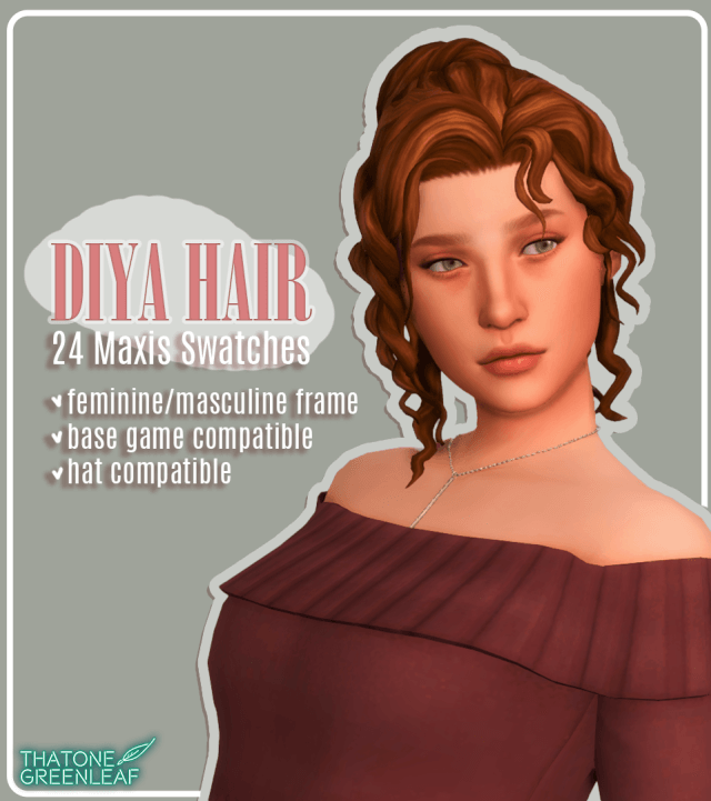 diya hair Maxis Match ♥ base game compatible! ♥ teen-elder, masculine and feminine frame ♥ 24 maxis swatches ♥ hat compatible ♥ new mesh, 10k ish poly