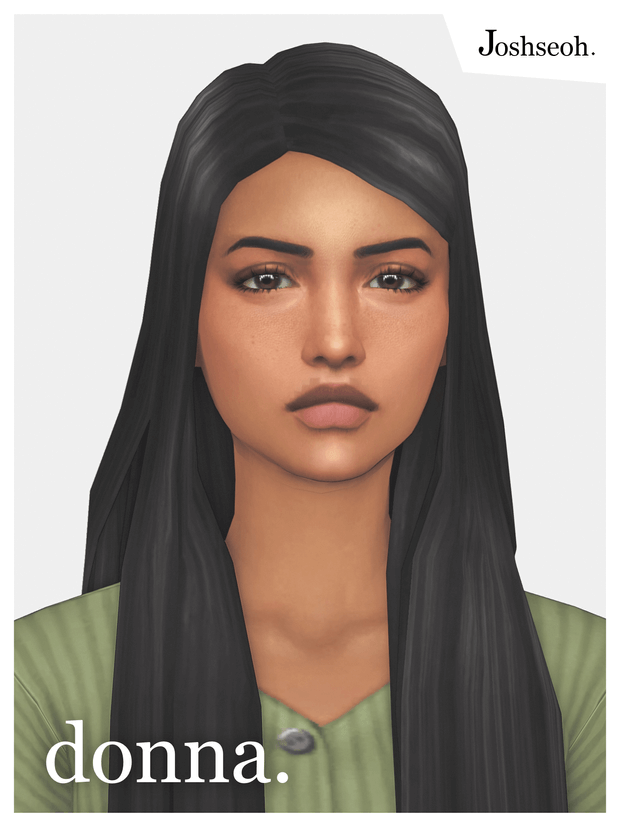 Donna Hair Maxis match hair vesion of this hair from The Sims 3 basegame! For feminine frame Basegame compatible 24 EA swatches For teen to elder Custom thumbnail Hat compatible Shadow map Specular map Normal map Disallowed for random