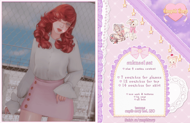 enknee1 set 7 swatches for glasses [9k Poly] 12 swatches for top [9k Poly] 14 swatches for skirt [9k Poly] new mesh & textures hq comp all lods
