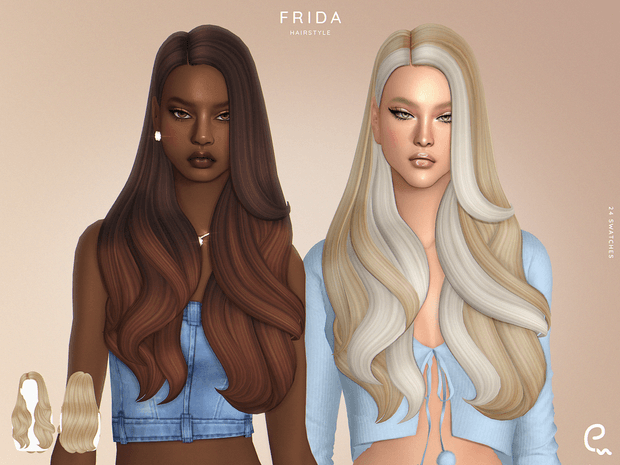 [EnriqueS4] Frida Hairstyle New Mesh Comes with 24 Swatches Hat Compatible Base Game Compatible All Lods Teen to Elder