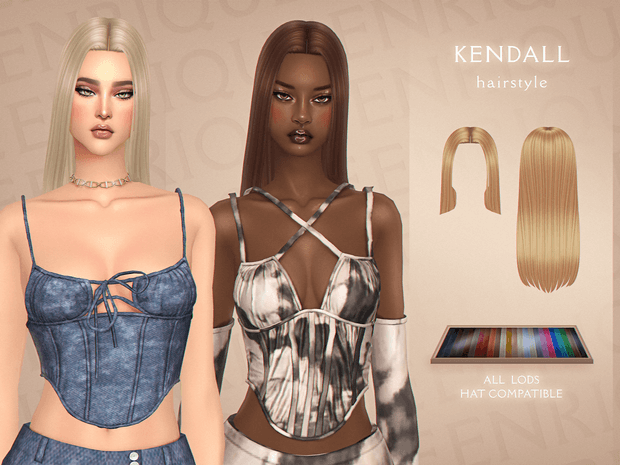 [EnriqueS4] Kendall Hairstyle New Mesh Comes with 24 EA Swatches Hat Compatible Base Game Compatible All Lods Teen to Elder If you use my cc don’t forget to tag me as well like #enriques4 or @enriques4, for see your sims using my cc. If you have any question or an issues, please let me know, i will try to fix it as soon as posible!!