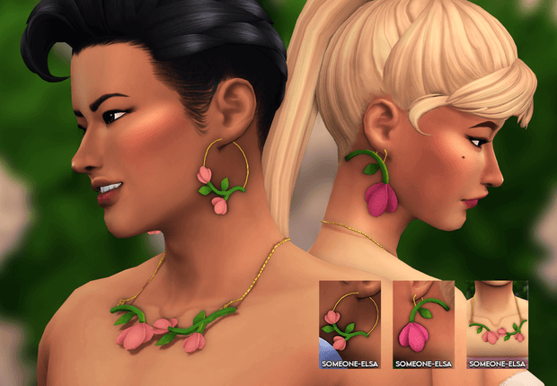 Flowery Jewellery Hortensia Earrings (single big flower) – 708 polys (LOD0) – 10 swatches Petunia Earrings (hoop) – 1220 polys (LOD0) – 10 swatches