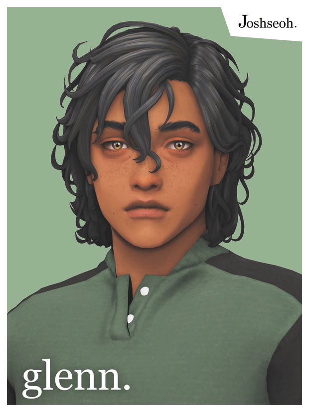 Glenn Hair For all frames Basegame compatible 24 EA swatches For teen to elder Custom thumbnail Hat compatible Shadow map Specular map Normal map Disallowed for random