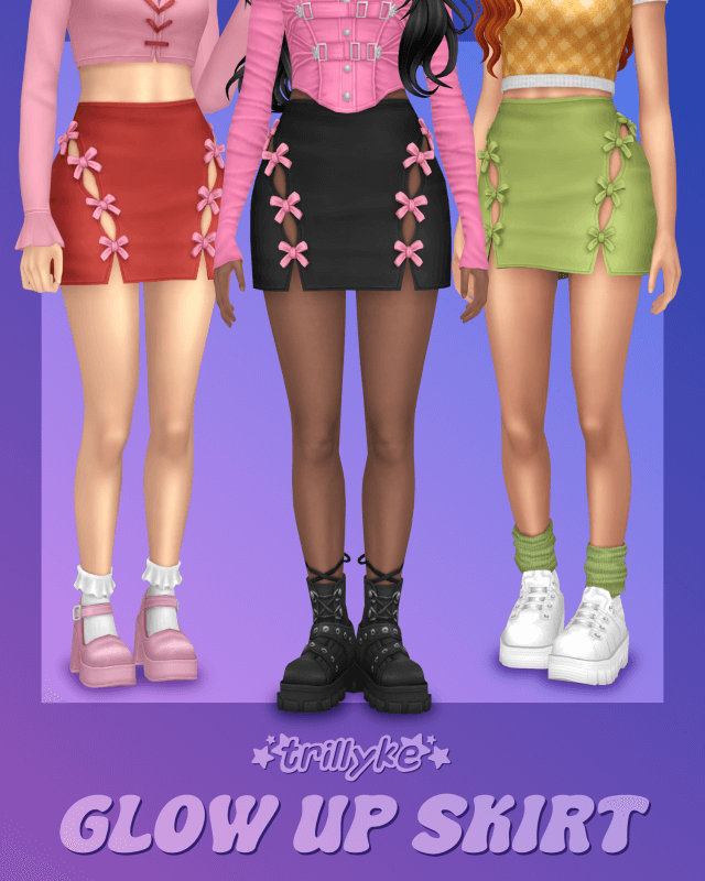 Glow Up Skirt Fun mini skirt with side cut outs and bow details ✨ (Inspired by) custom thumbnail 20 swatches base game compatible edited EA mesh by me
