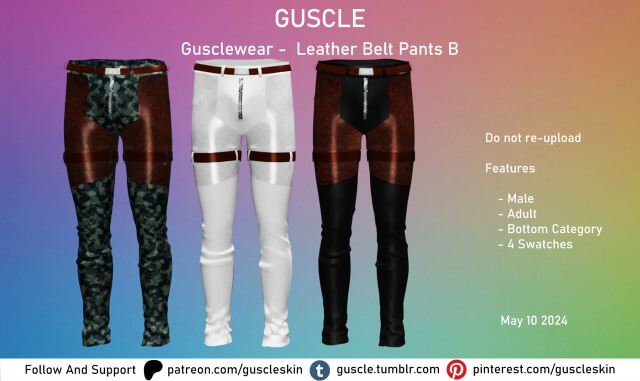 Gusclewear – Leather Belt Pants B Features Male Adult Bottom Category 4 Swatches