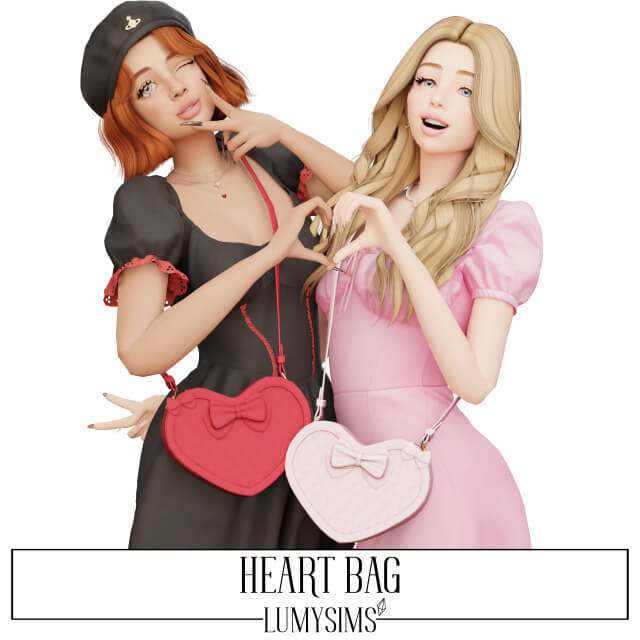 HEART BAG 25 Swatches; Teen to Elder; All Genders; Located in Bracelet Category; 80 Swatches; Bump Map; Shadow Map; HQ Mod Compatible; Custom Catalog Thumbnails;