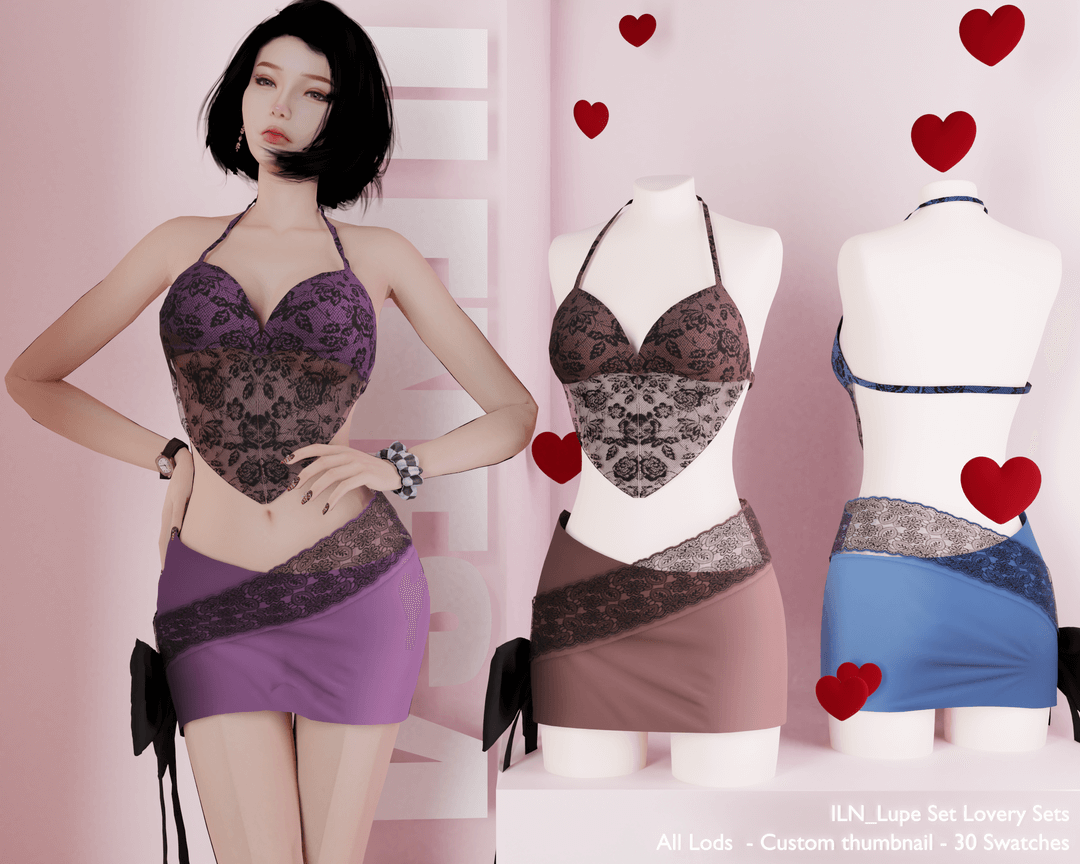 ILN. Lupe Set Lupe Set [ Assymetric Skirt with Crossboody Ribbon and Bratop ] – TOP / BOTTOM – NEW MESH – ALL LODS – NORMAL MAP – 30 SWATCHES – HQ COMPATIBLE – CUSTOM TUHUMBNAIL – EVERYDAY