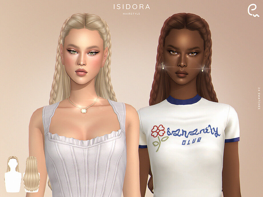 Isidora Hairstyle New Mesh 24 Swatches All Lods Base Game Compatible Teen to Elder Hat Chop Compatible