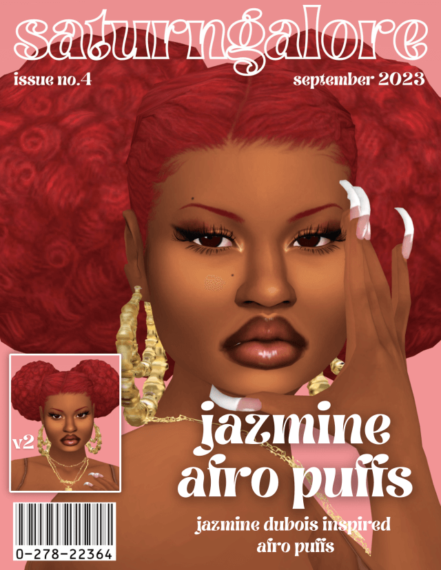 jazmine afro puffs with my last edit of the base game afro puffs, i really wanted some cartoonishly huge afro puffs like jazmine dubois’ character on boondocks so i made these! they have such a retro especially 70s and 90s/2000s nostalgic feel to them that’s really fun/playful to me. tysm to all my lovely testers <3333 base game compatible (bgc) maxis palette (24 swatches) + 1 bonus darker black swatch (inspired by @mangosimoothie‘s suggestion) teen-elder fem frame not hat compatible but some hats and accessories will fit with noticeable clipping in the back ear clipping custom thumbnails disallowed for random all lods