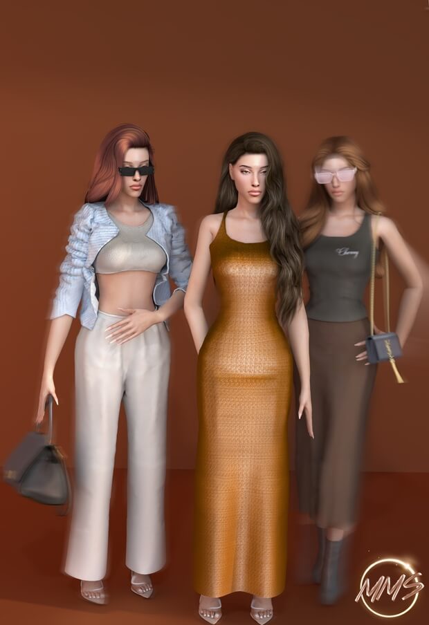 KENNY COLLECTION Collection Inspired by Kendall Jenner’s Street Fits Tom Ford Glossy Tank Maxi Bronze Dress New Mesh Female HQ Texture Custom thumbnail Reference New Mesh Female HQ Texture Custom thumbnail Reference