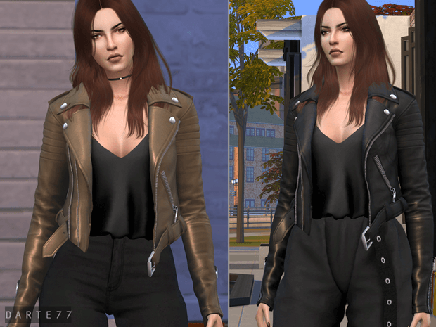 Leather Biker Jacket – Female – 15 swatches – All maps – HQ mod compatible – Base game compatible