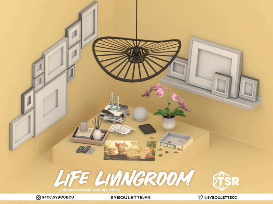 Life livingroom set (TSR) Introducing the Life Livingroom set, designed to infuse your Sims homes with a touch of authentic lived-in charm! From scattered magazines and unfinished puzzle letters to stacked invoices and casually placed TV remotes, this collection captures the delightful clutter that mirrors real life. Transform your Sims living spaces into cozy, relatable havens where the little messes and everyday moments tell stories. Add a dose of realism and vibrant animation to your interiors and let your Sims experience the beauty of imperfection and the warmth of a truly lived-in space !