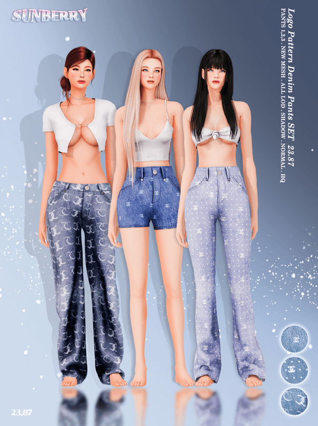 [SUNBERRY] Logo Pattern Denim Pants SET 23.87 PANTS 1,2,3 NEW MESH ALL LOD HQ 20/20/20 SWATCHES