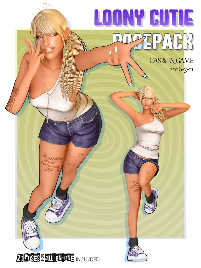 I finally finished this posepack! The name is kind of random tho, naming things is seriously the hardest part every time. I always start thinking I’ll make like 30 poses in one go, and then halfway through I lose patience and end up with 20 instead 🥲 20 solo poses (cas & in-game; all-in-one included) For cas just choose one trait