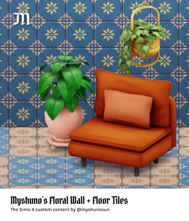 Myshuno’s Floral Wall + Floor Tiles It’s a Winterfest miracle! You can now get the matching wall tiles for my original Floral Floor Tiles. I have also optimised the floor tile textures to match the Maxis texture sizes. Have fun! Custom catalog thumbnails 12 tagged swatches