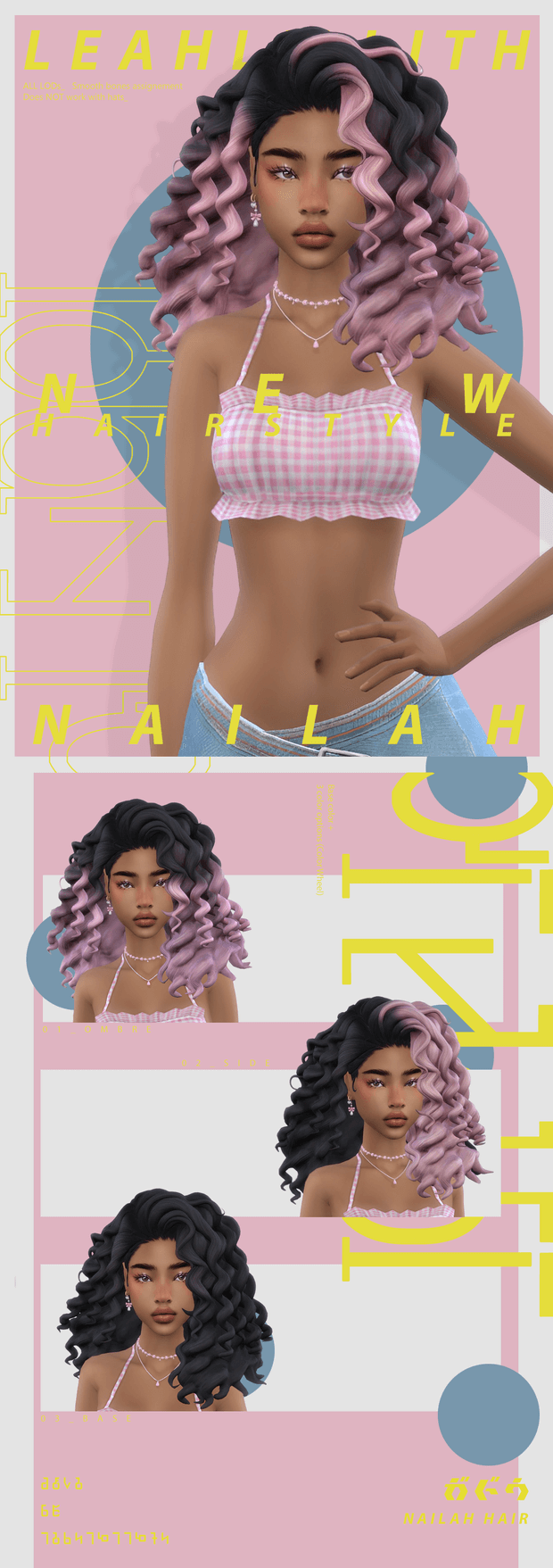 Hi, this time I have some big curly hairstyle for you <3 The base is solid and it comes with 3 different coloring types, which can be found in the Face Paint section. This Hair due to the volume does not work with hats. Also I have decided to stick to the Maxis Match Color Scheme but if you need any extra swatches please let me know <3