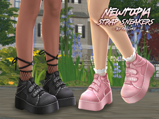 Newtopia Strap Sneakers Comfy platform shoes coming in a variety of pastel colour and multicolour options! 🧡 custom thumbnail 20 swatches base game compatible edited EA mesh by me