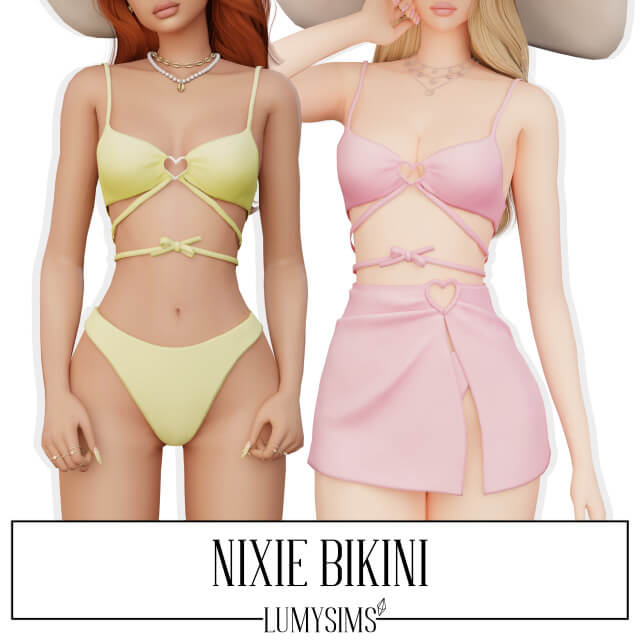 NIXIE BIKINI SET V1 40 Swatches; V2 40 Swatches; Heart 40 Swatches (Gloves Category); Bump Map;Shadow Map; HQ Mod Compatible; Custom Catalog Thumbnails;