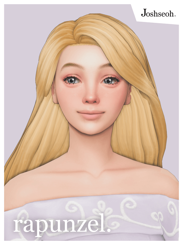 Rapunzel Hair For feminine frame Basegame compatible 24 EA swatches + 2 custom swatches For teen to elder Custom thumbnail Hat compatible Shadow map Specular map Normal map