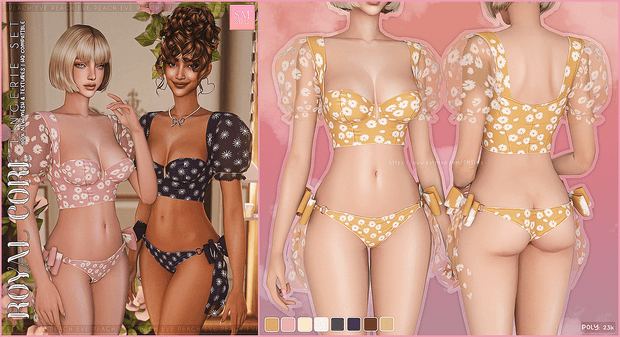 PEACH | Royal Core – Lingerie Set Mesh: all LODs, 100% new Textures: 100% new, HQ enabled Model Credits: Skin & Makeup: NorthernSiberiaWinds, Sims3Melancholic, Obscurus Hair: Sonyasims, Wings