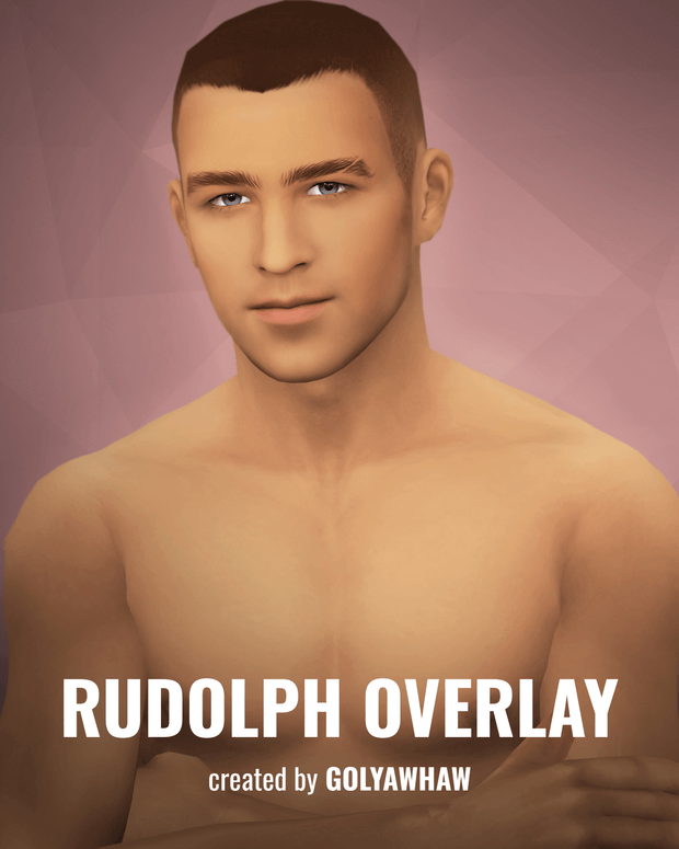 RUDOLPH OVERLAY Greetings all. I present to you a new overlay for your male sims. This is a much softer and universal overlay compared to the ones I usually make. This download contains: A Skin Detail Overlay This Overlay contains: Full Coverage Swatch Face Only Swatch Face Only (EA Eyes) I have added a bit more variance for those who would prefer to use the face on its own and for those who want to use EA eyes for variance.
