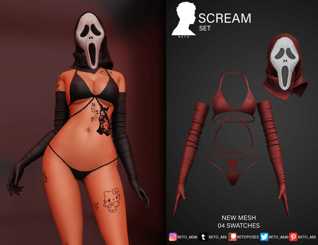 Scream – Set – Female Only – Teens, Young Adults, Adults and Elders – Custom Thumbnails – Compatible with base game -New Mesh