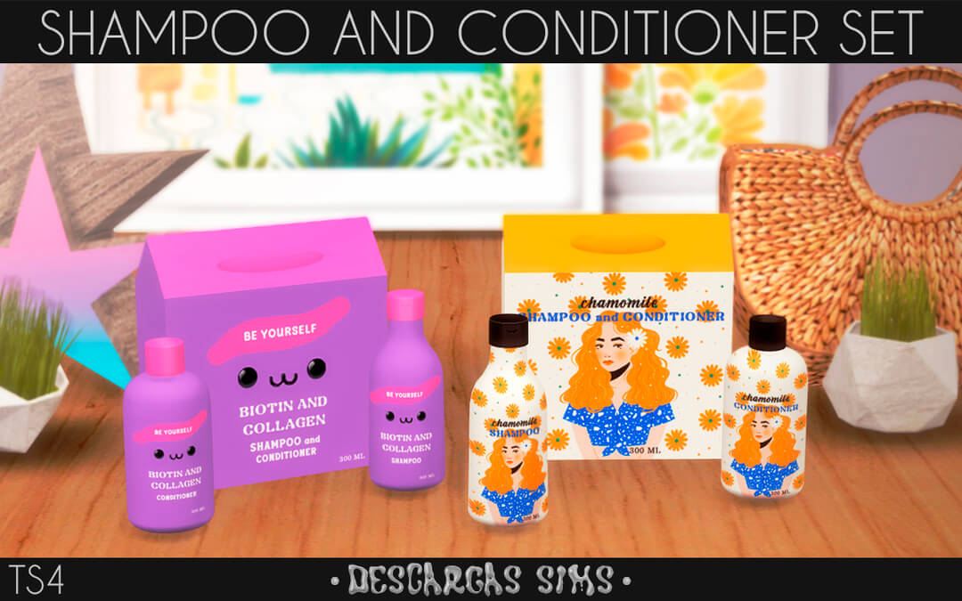 Shampoo And Conditioner Set 3 items: -Shampoo (7 swatches) -Conditioner (7 swatches) -Box (7 swatches) Shampoo and Conditioner meshes by Cassandre. Box mesh by Kativip.
