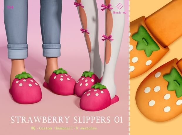 [Jius] Strawberry Slippers 01 ( Female & Male ) 8 swatches 4k+ Polygons
