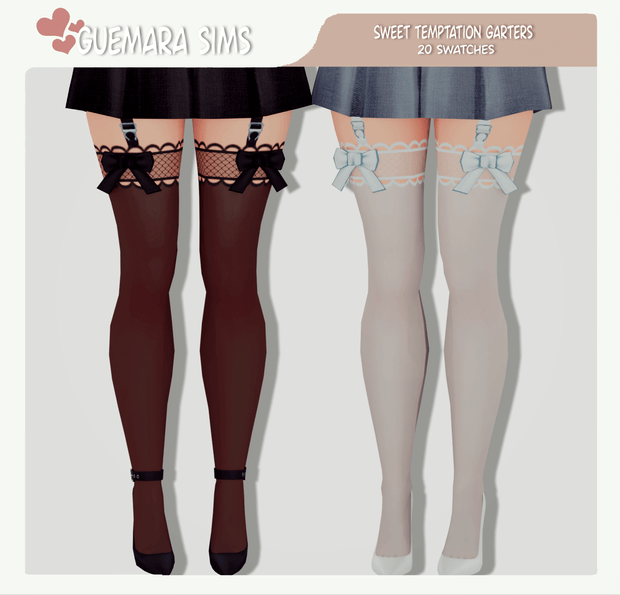 Sweet Temptation Garters (Public now!) New Enhance your Sim’s 4 wardrobe with my Sweet Temptation Garters! These elegant stockings feature intricate lace and adorable bows, adding a touch of sophistication and allure to any outfit. Available in a 20 colors, my garter stockings are perfect for creating a chic and fashionable look.