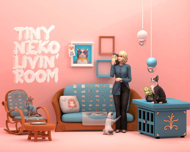 TINY NEKO LIVIN’ ROOM Set (Part 2) Part 2 is now DONE! I really hope you enjoy this tiny livin’ room set as much as we enjoyed making it 😻💘 What you get: Sofa Hallway Table Wall Frames Part 1 included: The Rocking Chair The Coffee Table The Plant Pot