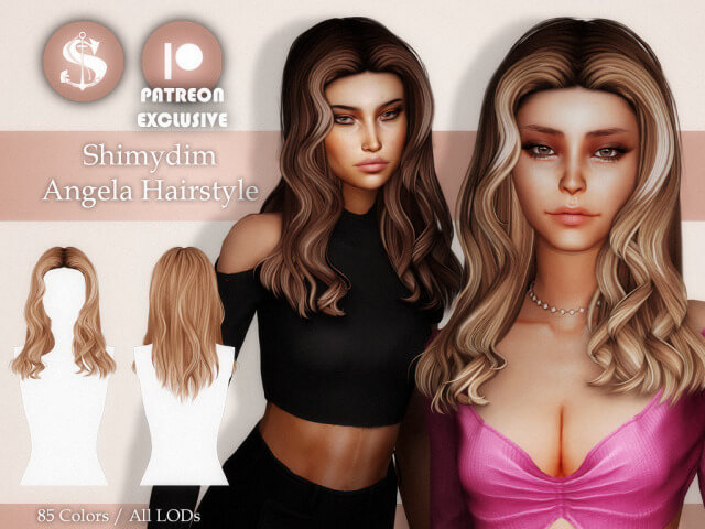 [TS4] – ANGELA HAIR 85 colors / (including 35 Unnaturals) Custom Thumbnail Mesh 100% by me, please don’t include in your recolors!