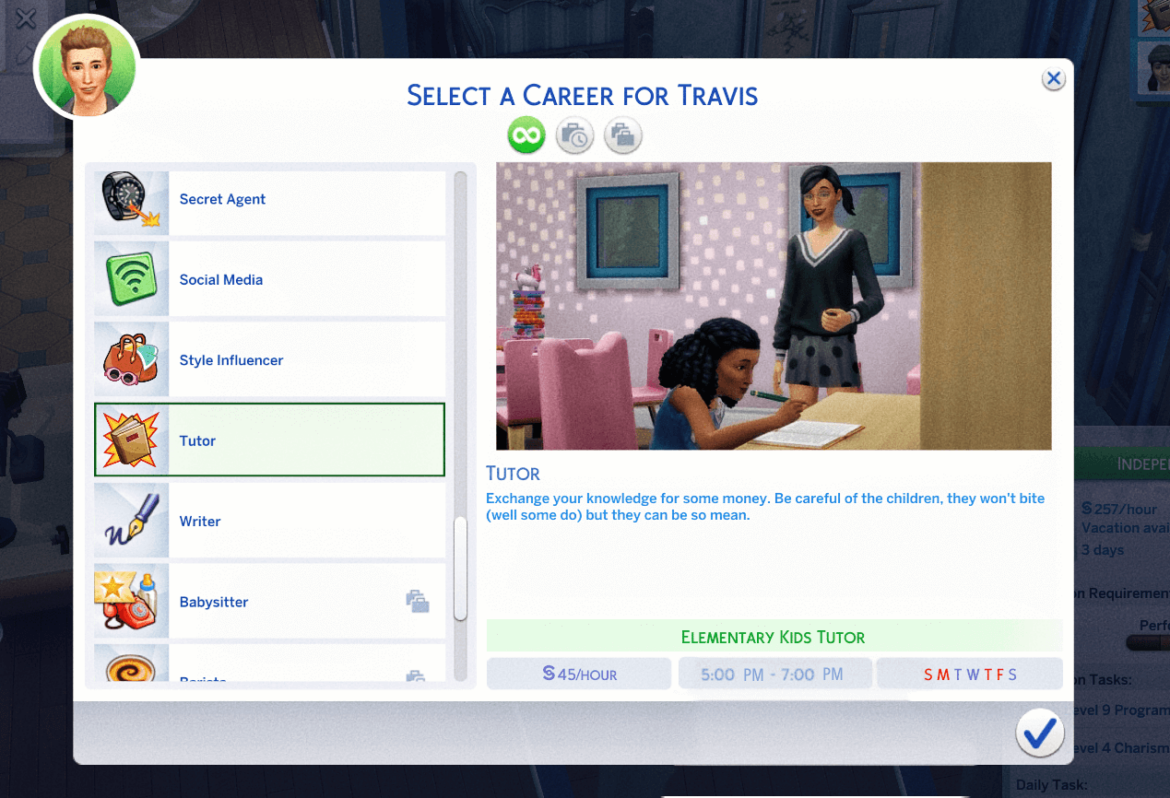 This is a Tutor Career, it has 3 levels. **Available to Teen-Elder with Level 4 Logic Skill and up** (It wouldn’t show up if your logic skill is lower than 4) : It was inspired by my boyfriend’s part-time career. I want to do a custom career but have no idea what so this is it! Hope you enjoy it!