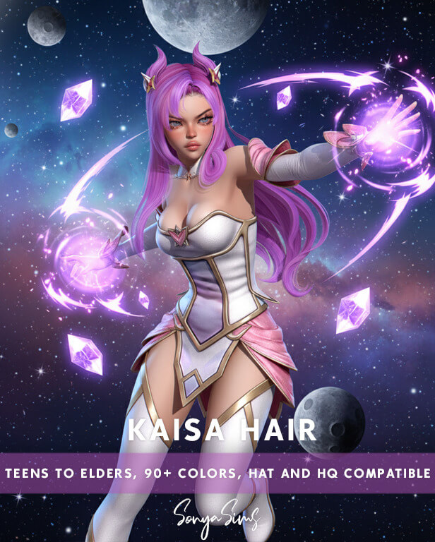 USAGI – Kaisa Hair Long wavy hair, japan, asian, anime. 5 versions and 1 ACC included. – All LODs (essential for gameplay performance). – Teens to elders. – HQ and hat compatible.