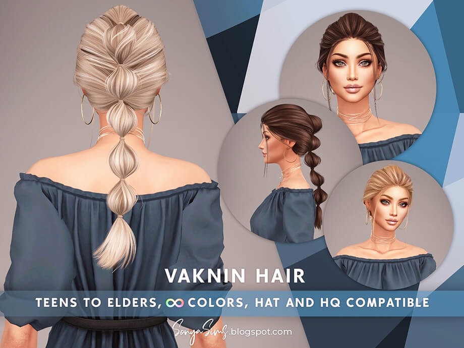 Vaknin Hair Shorter – Bubble braids pulled back with fronts strands. Shorter version. – All LODs (essential for gameplay performance). – Kids to elders. – HQ and hat compatible. – Almost unlimited colors.