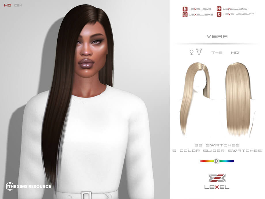 Vera (hairstyle) 39 swatches T – E Both frames HQ textures Color slider mod support Hats compatible