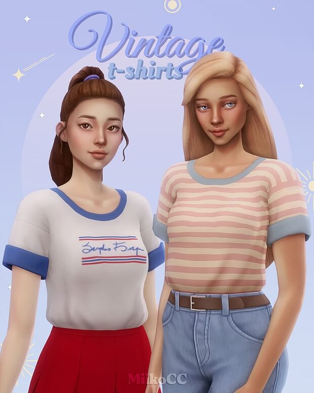 Vintage t-shirts Vintage t-shirts for the end of summer ☀️💛 The Sims 4 Base-game compatible 20 swatches (second picture) Red skirt by Trillyke