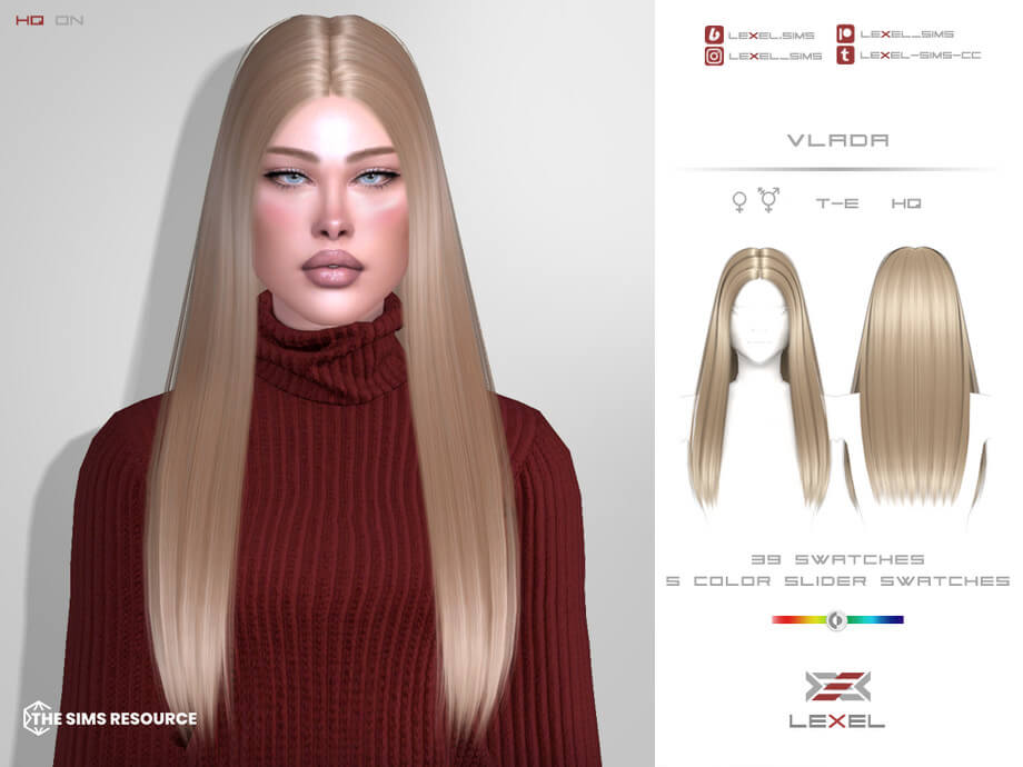 Vlada (hairstyle) 39 swatches T – E Both frames HQ textures Color slider mod support Hats compatible