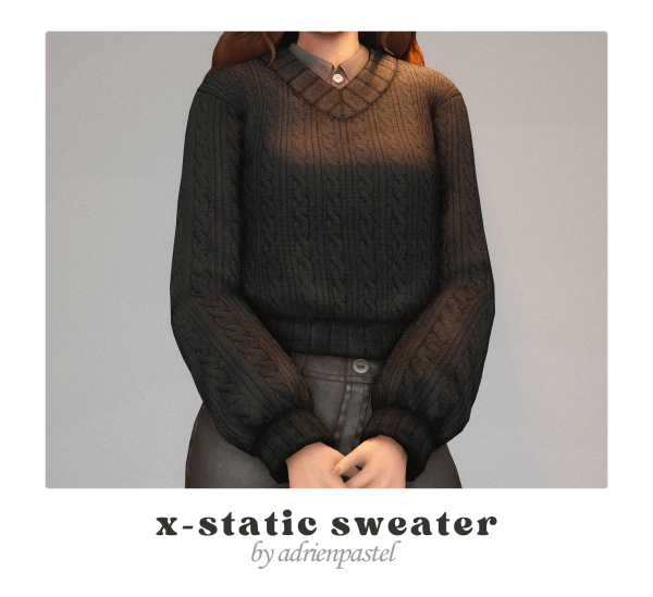 X-Static Process Sweater All LODs & Maps Female (Teen-Elder) 51 Swatches Base Game Compatible resources credits: random patterns bundle moonwood palette